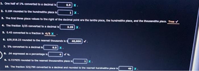 Solved 1 One Half Of 1 Converted To A Decimal Is 0 5 X 2 Chegg Com